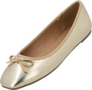 Ballerina Damen Voso - Bequeme Slippers - Elegante Flats - ideal für Alltag und besondere Anlässe Gold Metallic UK4,5 - EU37