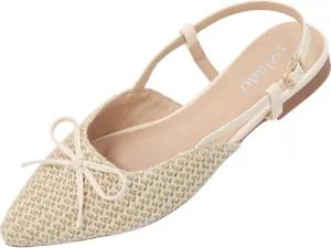 Slingback-Ballerina Damen Yvnee - Elegante Slipper mit verspielten Schleifendetails - modische Sommerschuhe - ideal für stilvolle Anlässe Beige UK3,5 - EU36