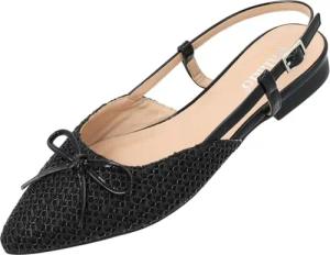 Slingback-Ballerina Damen Yvnee - Elegante Slipper mit verspielten Schleifendetails - modische Sommerschuhe - ideal für stilvolle Anlässe Schwarz UK3,5 - EU36
