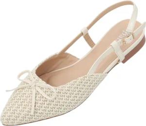 Slingback-Ballerina Damen Yvnee - Elegante Slipper mit verspielten Schleifendetails - modische Sommerschuhe - ideal für stilvolle Anlässe Weiß UK3,5 - EU36