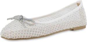 Damen Klassische Ballerinas Flach Strass Trendy Schuhe 217273 Weiss 36
