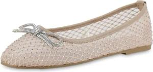 Damen Klassische Ballerinas Flach Strass Klassisch Schuhe 215951 Nude 36