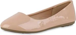 Damen Klassische Ballerinas Flache Freizeit Schuhe Elegante Slip Ons Lack Slippers Leder-Optik Schlupfschuhe 211178 Beige Lack 40