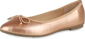 Damen Klassische Ballerinas Flache Kunstleder Schuhe Schleifen Slippers Bequeme Freizeitschuhe Sommerschuhe 203958 Rose Gold 41