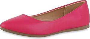 Damen Klassische Ballerinas Freizeit Schuhe Flache Slippers Basic Schupfschuhe Leder-Optik Büro Abendschuhe 211142 Fuchsia 41