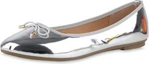 Damen Klassische Ballerinas Kunstleder Schuhe Flache Schleifen Freizeitschuhe Bequeme Sommerschuhe 211902 Silber 37