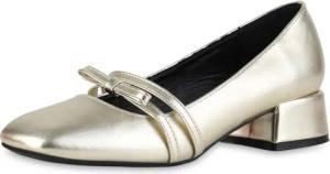 Damen Riemchenballerinas Blockabsatz Schleifen Klassisch Schuhe 216532 Gold 38