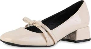 Damen Riemchenballerinas Blockabsatz Schleifen Klassisch Schuhe 216535 Beige Lack 38