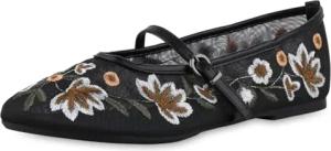 Damen Riemchenballerinas Flach Blumen Trendy Schuhe 217394 Schwarz 39