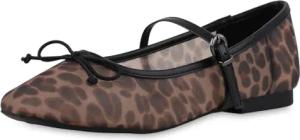 Damen Riemchenballerinas Flach Schleifen Klassisch Schuhe 217391 Leopard 36