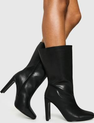 Womens Wide Fit Square Toe Heeled Boots - Black - 38, Black