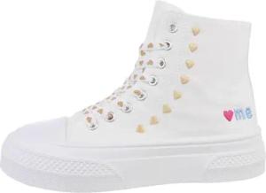 Ital Design Damenschuhe Freizeitschuhe Sneakers High, PC211-, Textil, Weiß Gold, Gr. 39