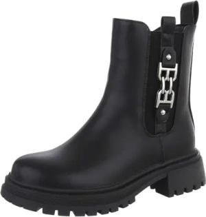 Ital Design Damenschuhe Stiefeletten Chelsea Boots, QH7811-, Kunstleder, Schwarz, Gr. 38