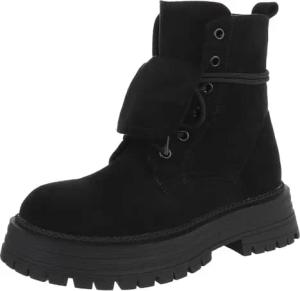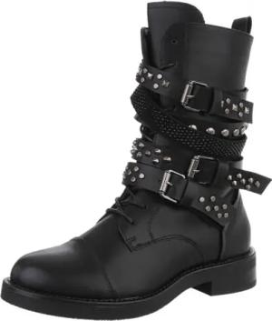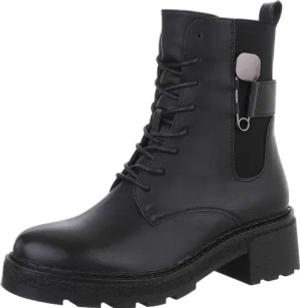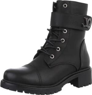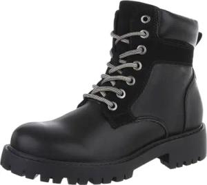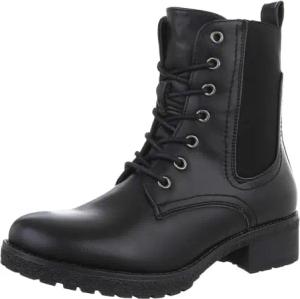Ital Design Damenschuhe Stiefeletten Schnürstiefeletten, DES8028-, Kunstleder, Schwarz, Gr. 36