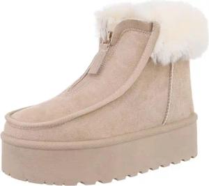 Ital Design Damenschuhe Stiefeletten Plateaustiefeletten, DE304P-, Kunstleder, Beige, Gr. 36