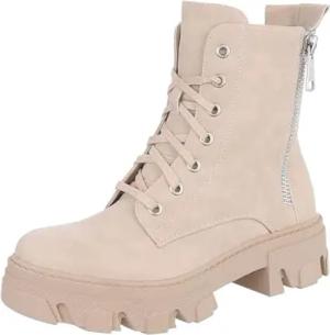 Ital Design Damenschuhe Stiefeletten Flache Stiefeletten, XQJ-5-, Kunstleder, Beige, Gr. 38