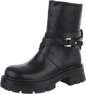Ital Design Damenschuhe Stiefeletten Flache Stiefeletten, K-99197-, Kunstleder, Schwarz, Gr. 36