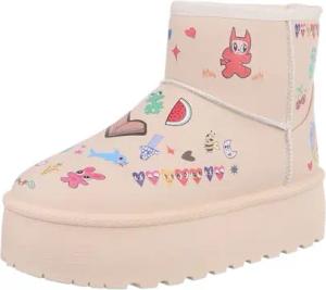 Ital Design Damenschuhe Stiefeletten Plateaustiefeletten, 2023-N22-, Kunstleder, Beige, Gr. 37