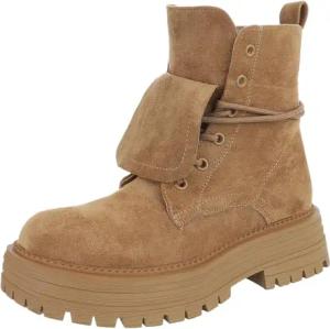 Ital Design Damenschuhe Stiefeletten Flache Stiefeletten, XQJ-5-, Kunstleder, Camel, Gr. 36