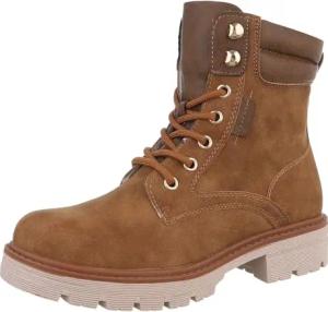 Ital Design Damenschuhe Stiefeletten Schnürstiefeletten, 1056-, Kunstleder, Camel, Gr. 38