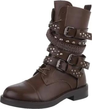 Ital Design Damenschuhe Stiefeletten Schnürstiefeletten, DES8028-, Kunstleder, Braun, Gr. 36