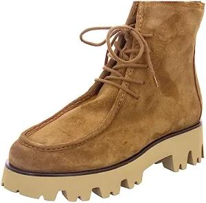 Damen SUPER Soft Schnürstiefelette mit Warmfutter, Frauen Schnürstiefeletten,Warm gefüttert,reißverschluss,Beige (Alpaca),38 EU / 5 UK