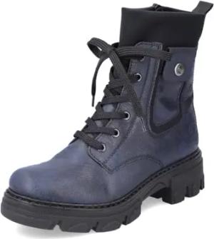 Damen Combat Boots 74640, Frauen Stiefeletten,schnürstiefel,Winterstiefel,Winterschuhe,gefüttert,Stiefel,Bootee,blau (14),38 EU / 5 UK
