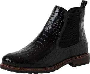 Damen Stiefelette Leder bequem; BLACK CROCO, EU 37