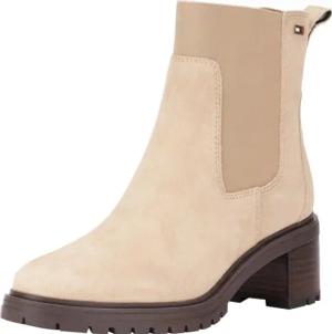 Damen Chelsea Boots Flag Mid Heel Suede aus Wildleder, Beige (Beige), 40