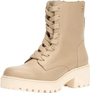 Damen Mid Boot Stiefel Chic Mid Heel Leather Lace-Up mit Absatz, Beige (Beige), 39