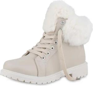 Damen Winter Boots Flach Profilsohle Bequem Schuhe 216510 Beige 36