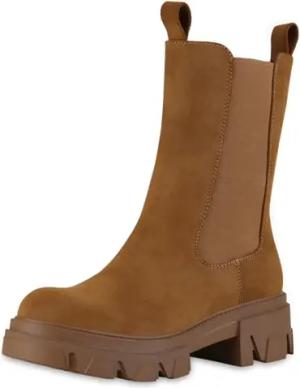 Damen Plateau Boots Plateau Profilsohle Bequem Schuhe 213728 Hellbraun 39