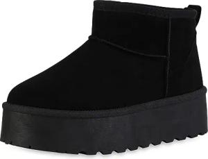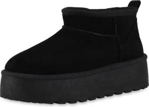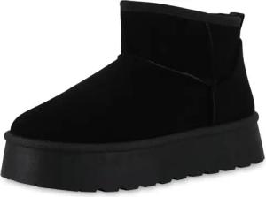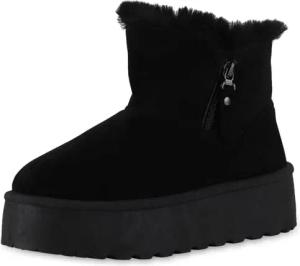 Damen Winter Boots Plateau Kunstfell Bequem Schuhe 215990 Schwarz 37