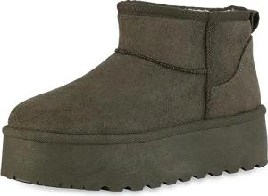 Damen Winter Boots Plateau Profilsohle Bequem Schuhe 216563 Khaki 41