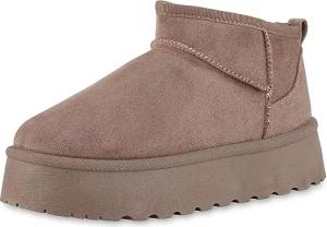 Damen Plateau Boots Plateau Profilsohle Trendy Schuhe 840622 213390 Taupe 36