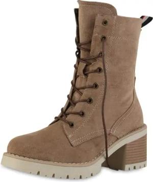 Damen Plateau Boots Plateau Profilsohle Trendy Schuhe 840622 213390 Taupe 38