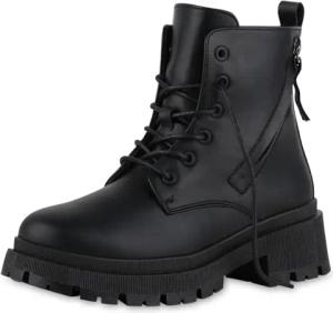 Damen Plateau Boots Plateau Profilsohle Trendy Schuhe 840609 213359 Schwarz 37