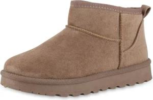 Damen Warm Gefütterte Winter Boots Flache Freizeit Stiefeletten Bequeme Profilsohle Schuhe Schlupfschuhe 210961 Taupe 37