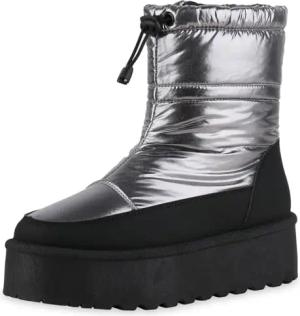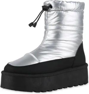 Damen Winter Boots Plateau Gesteppt Bequem Schuhe 216529 Silber Robust 37