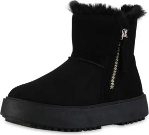 Damen Winter Boots Plateau Zipper Bequem Schuhe 216405 Schwarz 37
