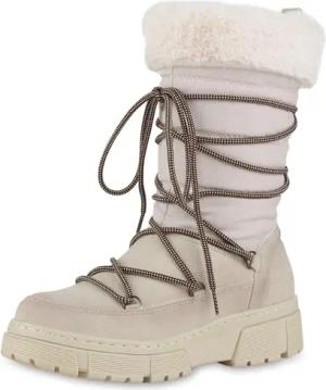 Damen Winter Boots Plateau Profilsohle Bequem Schuhe 214159 Beige 41