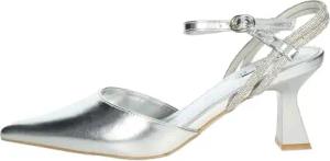12253 Silberne Damenschuhe Dekolletéabsatz Slingback Riemchenzehe 37