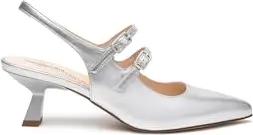 12253 Silberne Damenschuhe Dekolletéabsatz Slingback Riemchenzehe 37