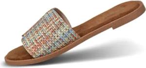 Damen Sandaletten, Frauen Sandalen,Sommersandalen,bequem,flach,Sommerschuhe,Freizeitschuhe,offene Schuhe,Offwhite/Multicolour (2181),37 EU/EU UK