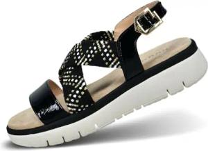 Damen Sandalen in Schwarz mit gestrickten Obermaterialien, lackierten Riemen, modernen Farbakzenten und weichen Textileinlegesohlen. black/offwhite 40 EU