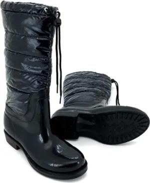 Gummistiefel Hochschaft Daunen Stiefel gesteppt Damen Mädchen Trend Boots Wasserdicht Regenstiefel Typ880 schwarz glänzend 37