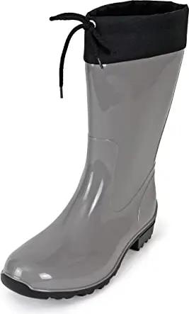 Damen Gummistiefel de Fieselregen Regenstiefel Langschaft, Farbe:silbergrau/schwarz, Größe:42 EU