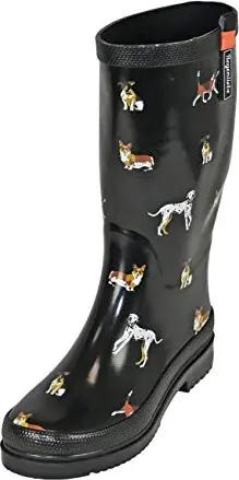 Damen Gummistiefel Waldi High Langschaft Regenstiefel Hunde Motiv, Farbe:schwarz, Größe:42 EU