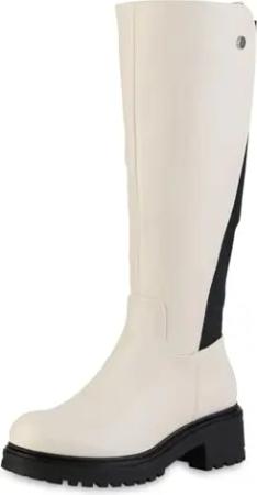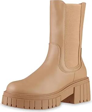 Damen Klassische Stiefel Blockabsatz Profilsohle Trendy Schuhe 216353 Beige 37