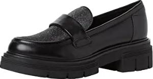 Damen Loafer ohne Absatz aus Kunstleder Klassisch, Schwarz (Black Glitter), 38
